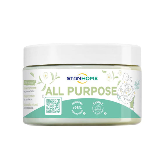 Uscendo dalla doccia o dopo un’attività sportiva intensa, senti quella sensazione di pelle secca che tira… È il momento perfetto per prenderti cura di te con la crema ALL PURPOSE TÈ BIANCO di Stanhome. Che sia un mattino d’inverno in cui il freddo aggredisce la pelle o una sera d’estate dopo una giornata al sole: ALL PURPOSE TÈ BIANCO diventerà presto indispensabile. Dopo la piscina, per lenire la pelle dal cloro, o dopo il giardinaggio per riparare le mani rovinate, questa crema è adatta in qualsiasi situazione. Che sia dopo un’esposizione prolungata all’aria condizionata calda o fredda, o semplicemente quando senti il bisogno di sollievo, la crema ALL PURPOSE TÈ BIANCO è lì per te. La sua texture vellutata trqsforma ogni applicazione in un istante di benessere. Scegli questo gesto semplice ed essenziale per te e i tuoi cari e fai di ogni momento in cui lo utilizzi una parentesi di dolcezza.