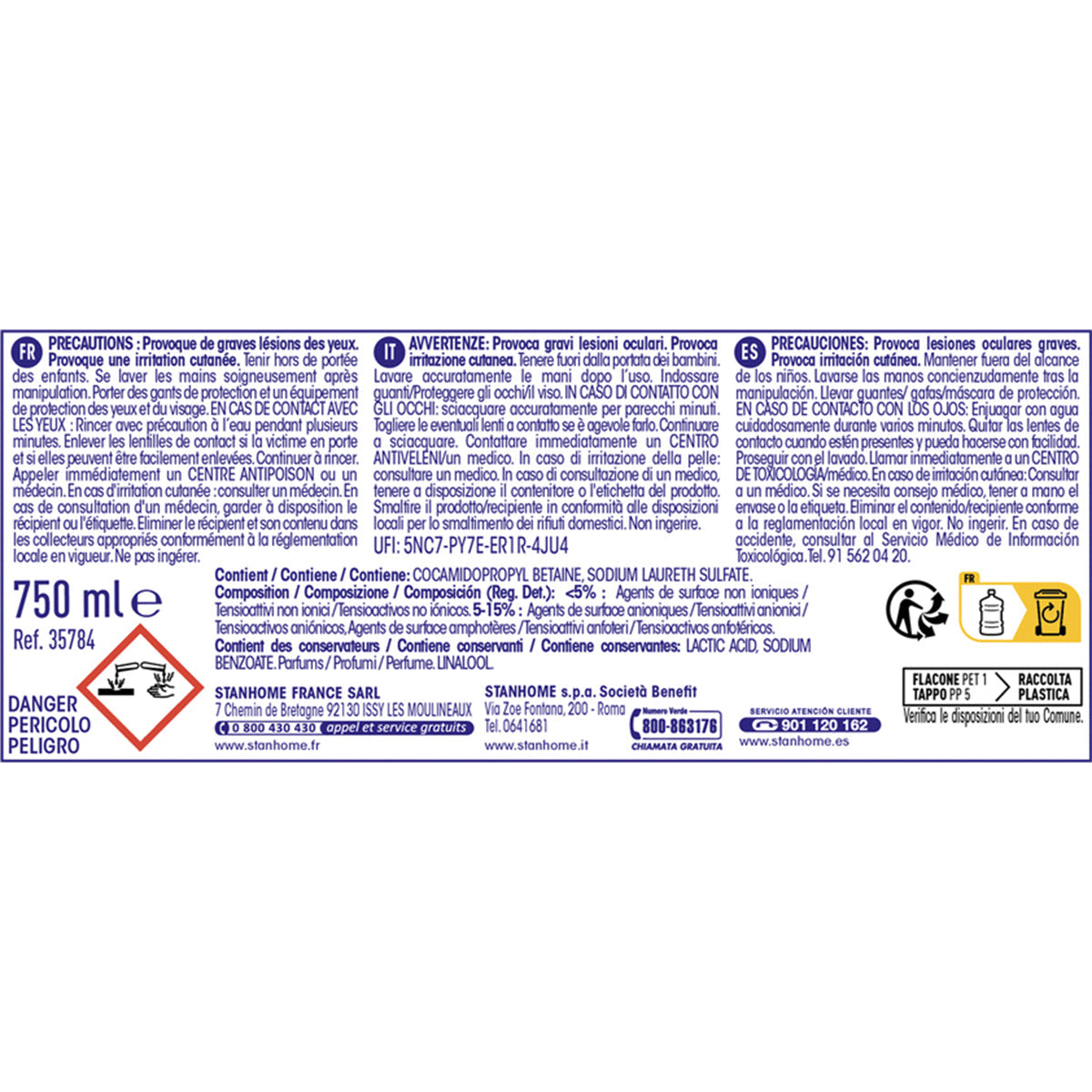 - Pulizia ordinaria: utilizzando il dosatore Stanhome, diluire 30 ml in 5 L d’acqua.
